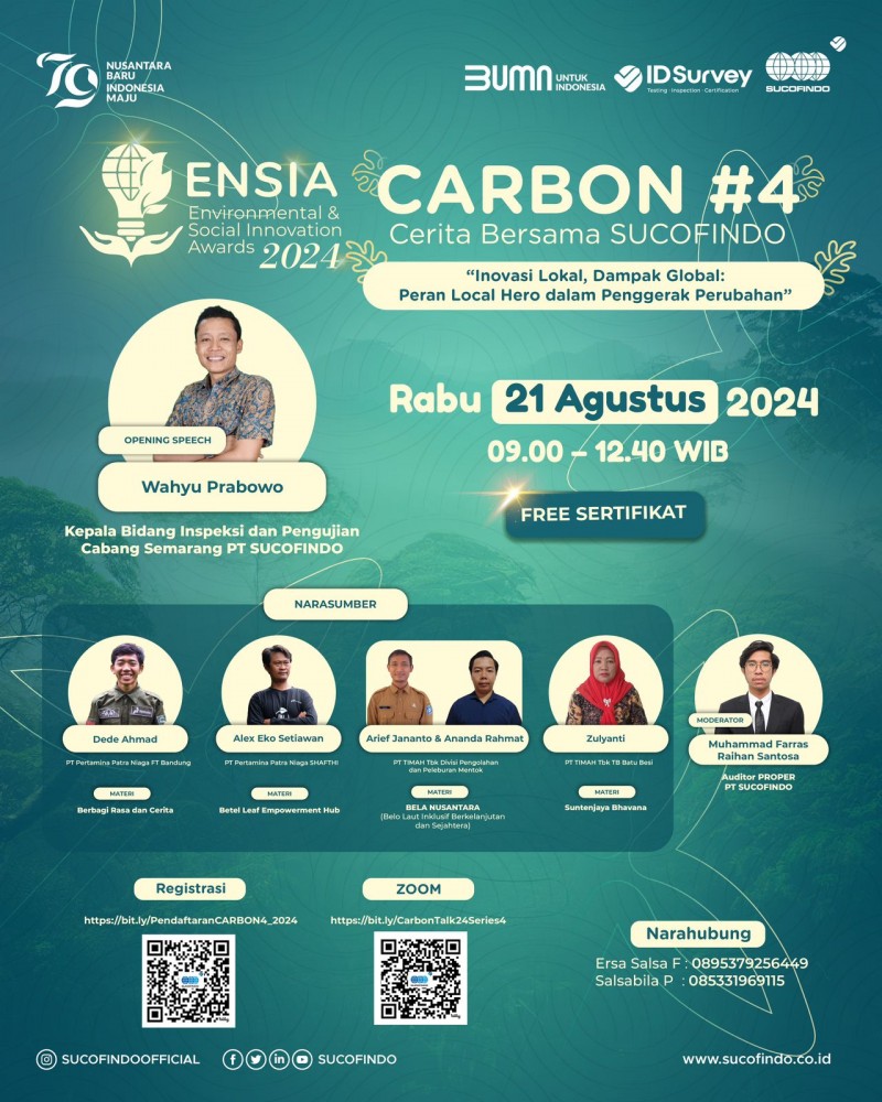 Tiga tokoh lokal hero binaan PT Timah ini membagikan pengalaman mereka bersama PT Timah dalam menggerakkan ekonomi masyarakat dalam Webinar CARBON # 4 (Cerita Bersama Sucofindo) yang digelar secara virtual pada Rabu (21/8/2024).