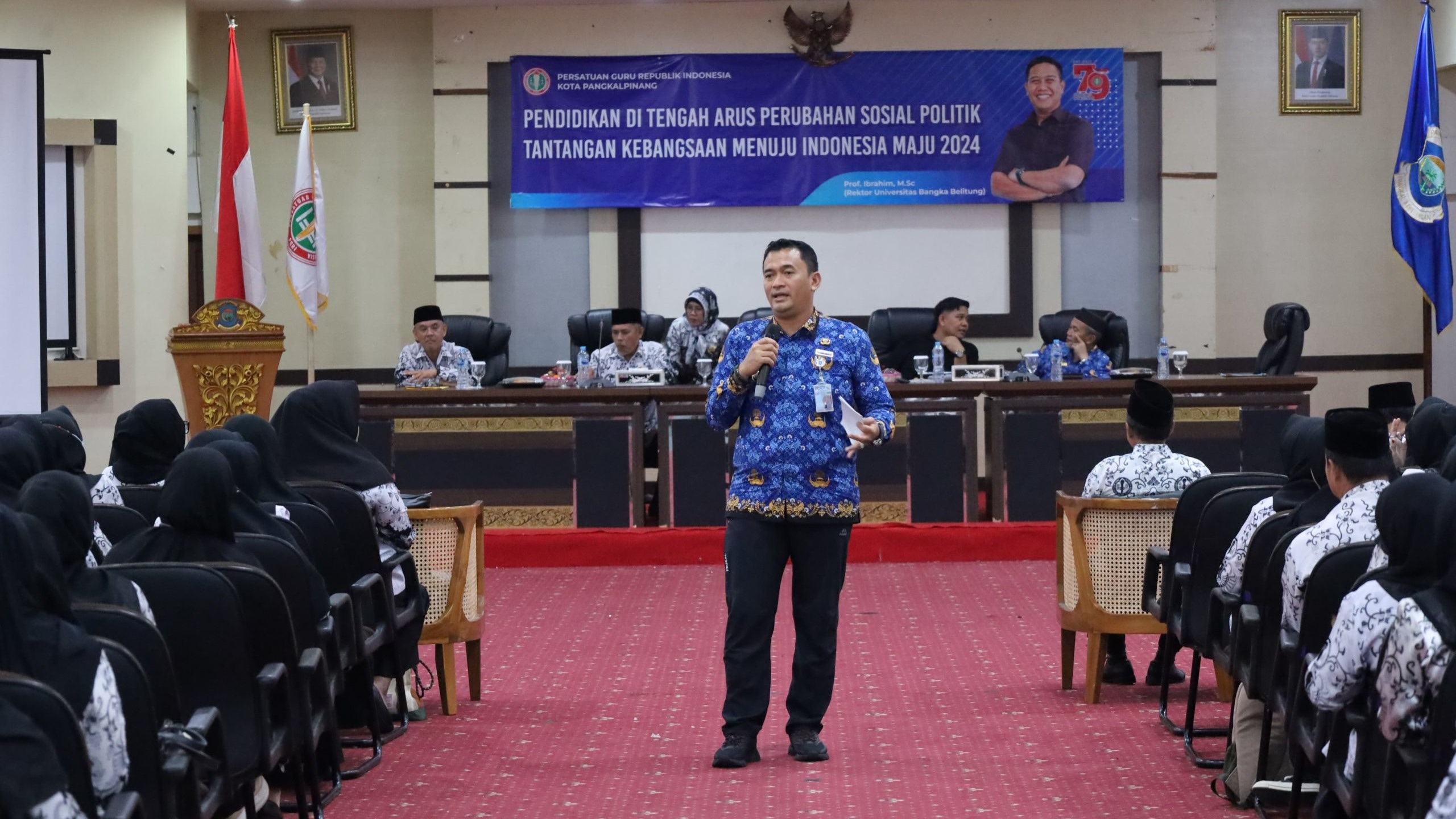 PANGKALPINANG, DAN – Persatuan Guru Republik Indonesia (PGRI) Kota Pangkalpinang menggelar Seminar Pendidikan untuk memperingati Hari Guru Nasional tahun 2024 dan HUT PGRI ke -79 di Ruang Pertemuan OR Kantor Wali Kota Pangkalpinang, Senin (18/11/2024). Kegiatan ini ditujukan dalam rangka meningkatkan kompetensi dan kesadaran berorganisasi hingga memantapkan perjuangan PGRI untuk meningkatkan harkat martabat guru. Tak hanya itu, perlunya kegiatan ini untuk menambah wawasan guru tentang pendidikan di era global dalam mewujudkan merdeka belajar.