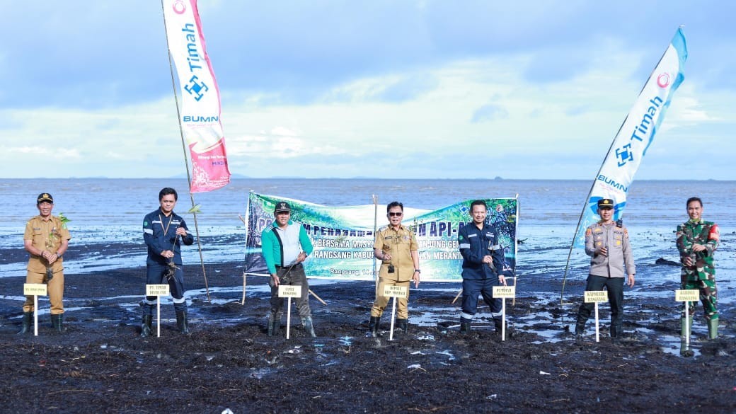 KEPULAUAN MERANTI, DAN — Untuk membantu mengurangi dampak abrasi, PT Timah Tbk Head Area Kundur bersama Plt.Bupati Kepulauan Meranti Asmar menanam ribuan mangrove di Pantai Sesai Party Beach, Desa Tanjung Gemuk, Kecamatan Rangsang, Kabupaten Kepulauan Meranti pada Selasa (14/1/2025).