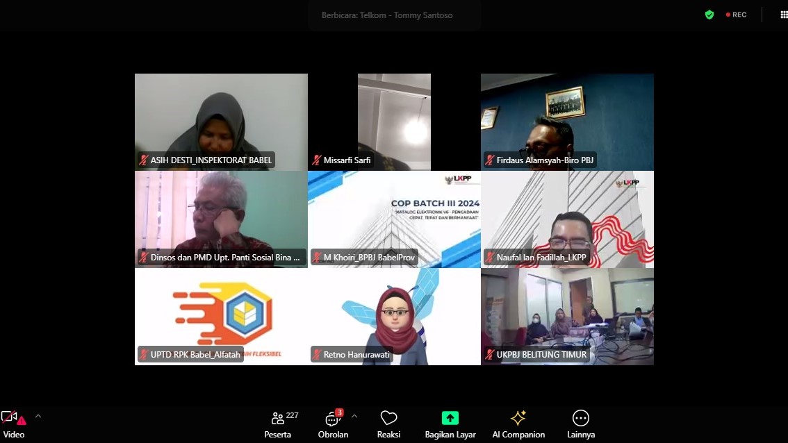 PANGKALPINANG, DAN – Untuk meningkatkan penggunaan Produk Dalam Negeri dan Produk Mikro, Usaha Kecil dan Koperasi, Pemerintah Provinsi Kepulauan Bangka Belitung (Pemprov Babel) melalui Biro Pengadaan Barang/Jasa (PBJ) melakukan Live Transaction Belanja Katalog Elektronik yang dilakukan secara virtual, Kamis (20/3/2025). Kegiatan ini diselenggarakan dengan tujuan menindaklanjuti SE Mendagri terkait percepatan pelaksanaan PBJ melalui E-Katalog versi 6 di pemerintah daerah sehingga perlu untuk dilihat bagaimana proses pengadaan barang jasa dilakukan di versi terbaru ini.