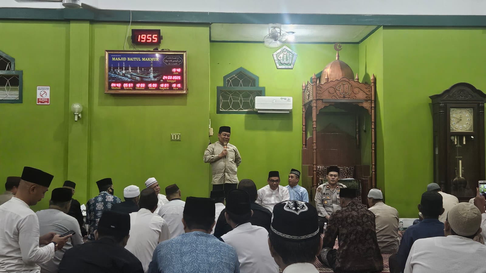 PANGKALPINANG, DAN – Pemerintah Kota Pangkalpinang melanjutkan program safari Ramadan, Senin (24/03/25). Kali ini, kegiatan dilaksanakan di Masjid Baitul Makmur, Kecamata Girimaya yang dihadiri langsung, Pj Wali Kota Pangkalpinang, M Unu Ibnudin, Sekretaris Daerah (Sekda) Pangkalpinang, Mie Go beserta unsur Forkopimda.