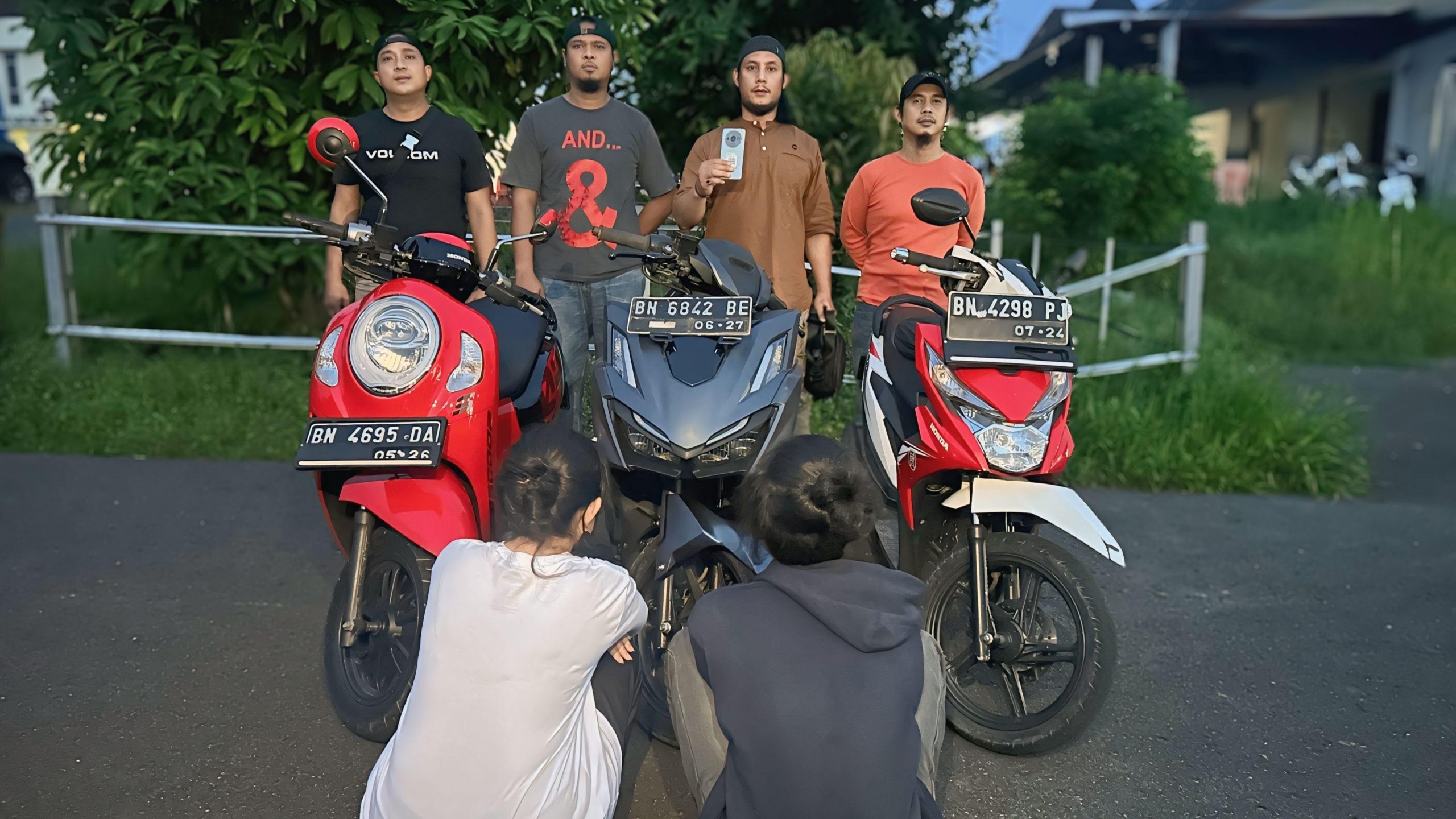 Dalam penangkapan ini, polisi juga mengamankan sejumlah barang bukti, di antaranya 1 unit sepeda motor Honda Scoopy warna hitam merah (BN 4695 DA), 1 unit sepeda motor Honda Beat warna merah putih (BN 4298 PJ), 1 unit ponsel Redmi A3 warna hijau, dan 1 buah tas hitam