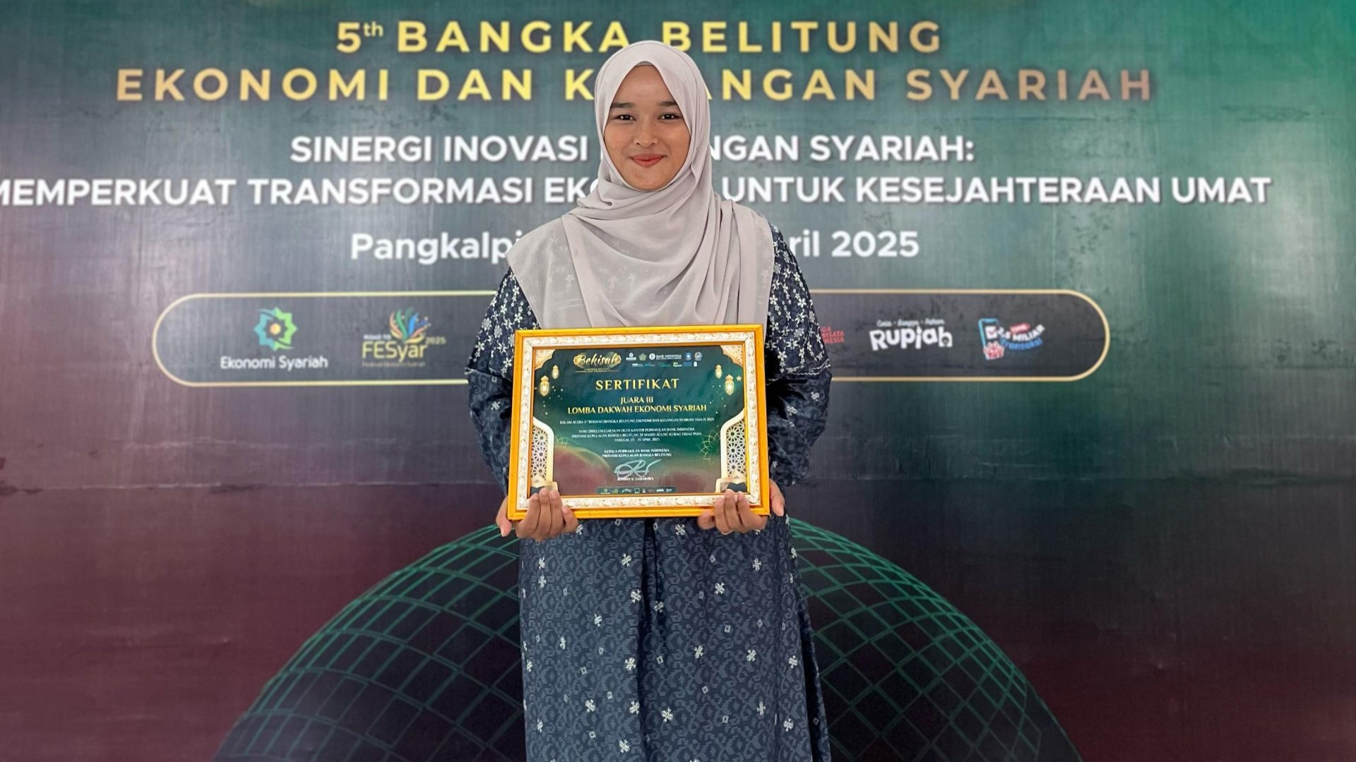 PANGKALPINANG, infoupdate.co – Zahra Zanzabila, seorang mahasiswi semester 2 dari Program Studi Pendidikan Guru Sekolah Dasar (PGSD) Universitas Muhammadiyah Bangka Belitung (UNMUH Babel), berhasil meraih juara 3 dalam lomba Dakwah Ekonomi Syariah. Acara ini merupakan bagian dari rangkaian kegiatan Bekisah (Bangka Belitung Ekonomi dan Keuangan Syariah) yang diselenggarakan oleh Bank Indonesia cabang Bangka Belitung pada Jumat, 25 April 2025, bertempat di Masjid Kuba Timah, Pangkalpinang.