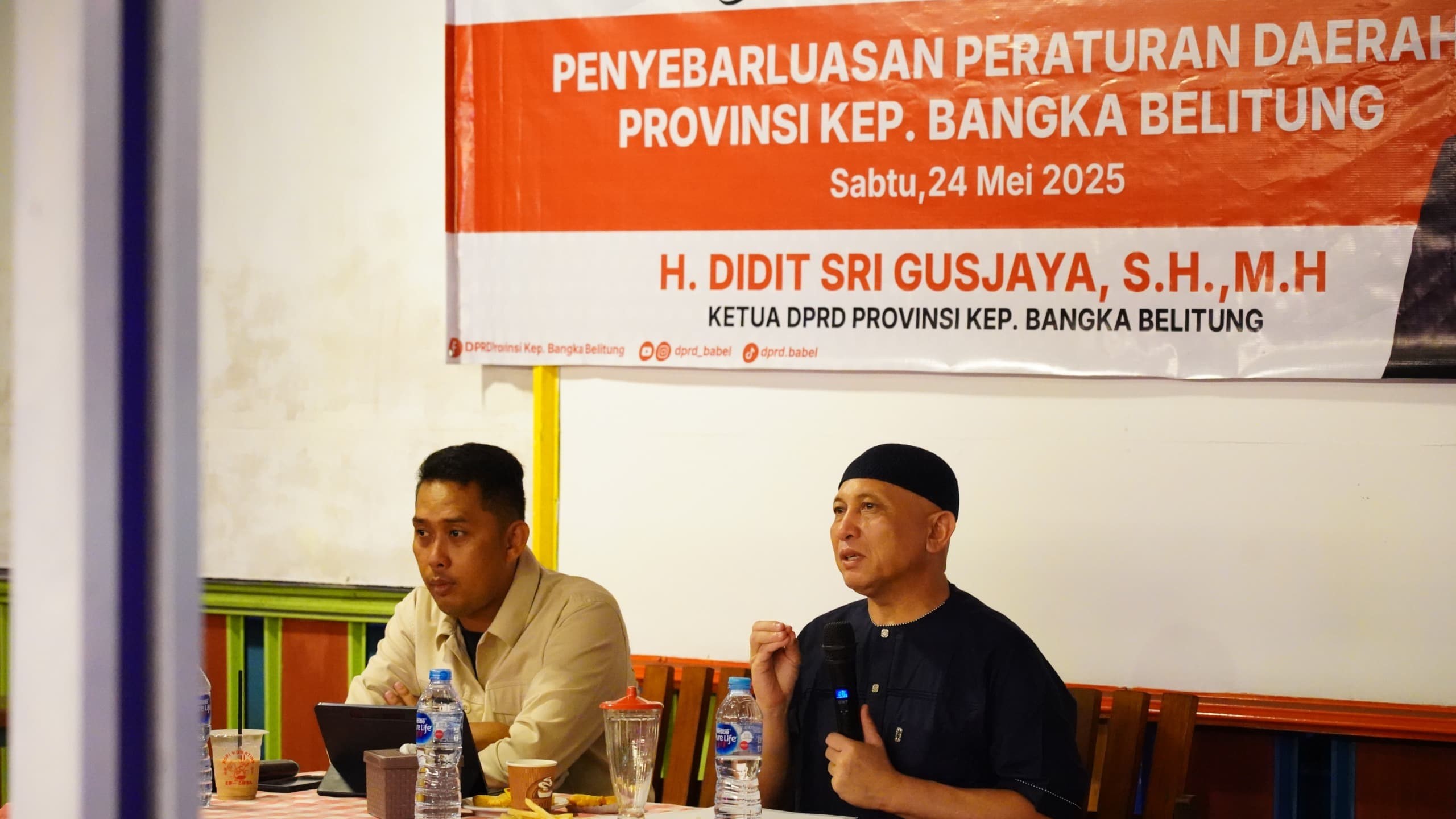 BANGKA TENGAH, DAN – Ketua DPRD Provinsi Kepulauan Bangka Belitung (Babel), Didit Srigusjaya menyoroti persoalan pembiayaan pendidikan saat menyosialisasikan Peraturan Daerah (Perda) Nomor 2 Tahun 2018 tentang Pengelolaan dan Penyelenggaraan Pendidikan. Kegiatan ini digelar di Cafe Cik Lily, Koba, Kabupaten Bangka Tengah, pada Senin malam (24/5/2025).