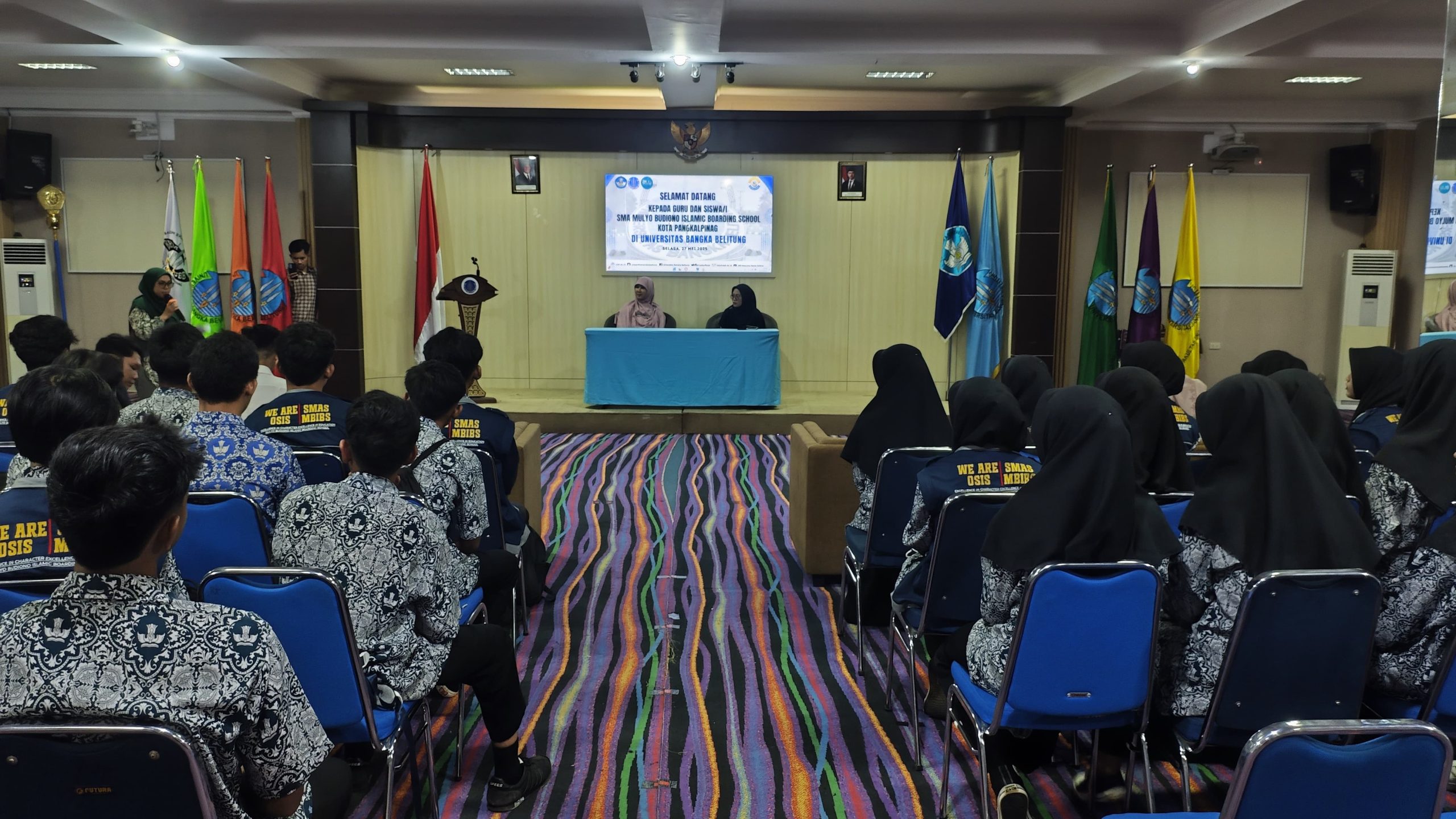 BANGKA, DAN – Universitas Negeri Bangka Belitung (UBB) menerima kunjungan dari SMA Mulyo Budiono Islamic Boarding School Pangkalpinang pada Selasa (27/05/2025) dalam rangka pengenalan dunia perguruan tinggi kepada siswa. Rombongan yang terdiri dari 35 orang, meliputi siswa dan guru pendamping, disambut di Ruang Balai Besar Peradaban (BBP) Rektorat UBB.