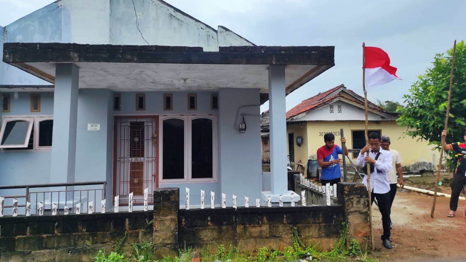 Suasana hangat menyelimuti kunjungan tersebut. Samsuma, warga Batu Belubang, tersenyum lebar saat rumahnya dipasangi bendera baru.