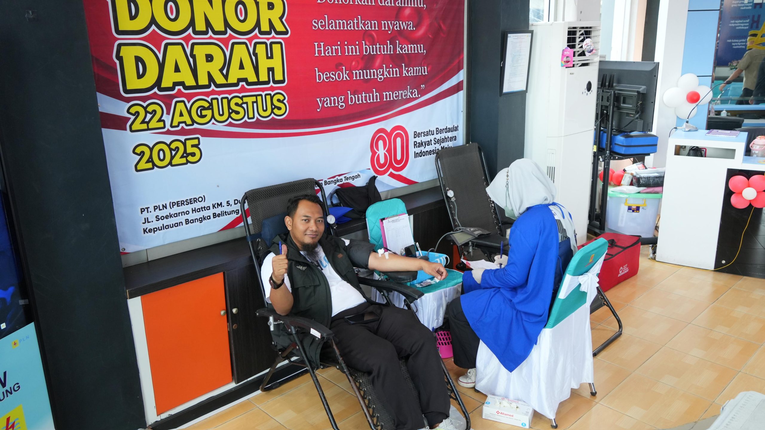 PANGKALPINANG, DAN – PLN Unit Induk Wilayah Bangka Belitung (PLN UIW Babel) bekerja sama dengan Palang Merah Indonesia (PMI) Pangkalpinang menggelar kegiatan donor darah di Kantor PLN UIW Babel, Jalan Soekarno Hatta, Pangkalpinang, Kamis (22/8/2025). Aksi sosial ini dalam rangka memperingati Hari Ulang Tahun ke-80 Kemerdekaan Republik Indonesia.