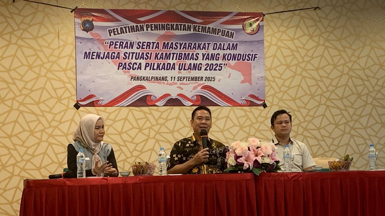 PANGKALPINANG, DAN – Direktorat Intelkam Polda Kepulauan Bangka Belitung (Babel) melalui Subdit Politik dan Pemerintahan menggelar pelatihan peningkatan kemampuan dengan tema “Peran Serta Masyarakat dalam Menjaga Situasi Kamtibmas yang Kondusif Pasca Pilkada Ulang 2025′, Kamis (11/9/2025). Kegiatan ini menekankan pentingnya sinergi antara kepolisian dan masyarakat dalam menjaga keamanan setelah dinamika politik pemilihan.
