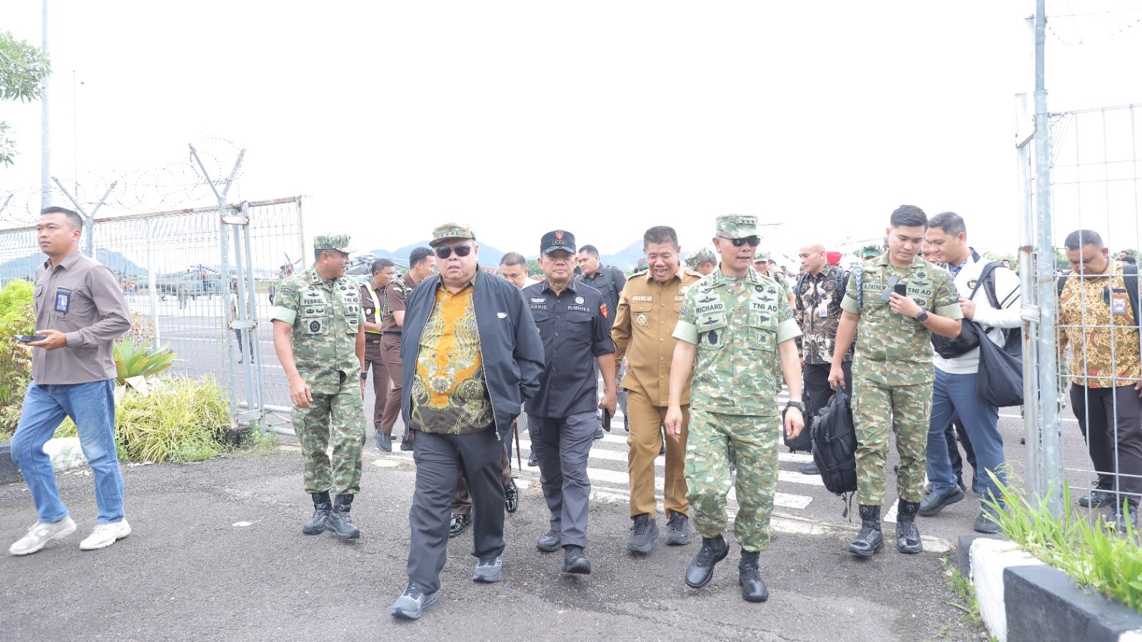 Rombongan tiba sekitar pukul 13.20 WIB menggunakan Pesawat TNI AU A7305 Boeing 737-2X8 Surveiller, didampingi tiga helikopter TNI AU jenis Karakal dan Super Puma. Kehadiran unsur TNI AU tersebut sekaligus menandai rangkaian kegiatan Pelatihan Militer Gabungan Tahun 2025 yang berlangsung di wilayah Babel.