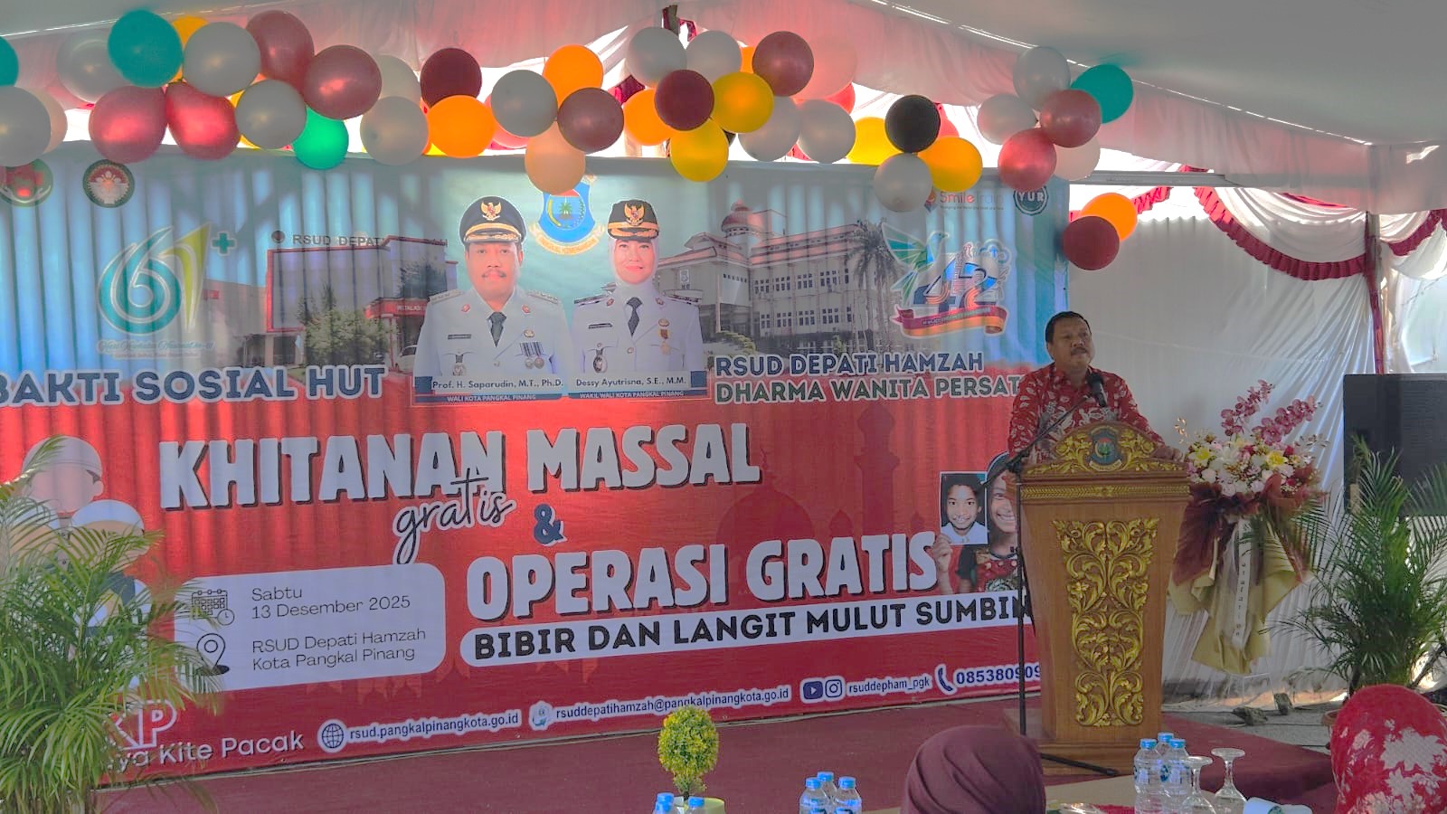 PANGKALPINANG, DAN – Peringatan Hari Ulang Tahun (HUT) ke-42 RSUD Depati Hamzah Kota Pangkalpinang menjadi momentum penting dalam upaya peningkatan kualitas pelayanan kesehatan bagi masyarakat. Hal tersebut ditandai dengan pelaksanaan bakti sosial berupa khitanan massal dan operasi gratis bibir serta langit-langit mulut sumbing, Sabtu (13/12/2025), di Ruang Betason RSUD Depati Hamzah.