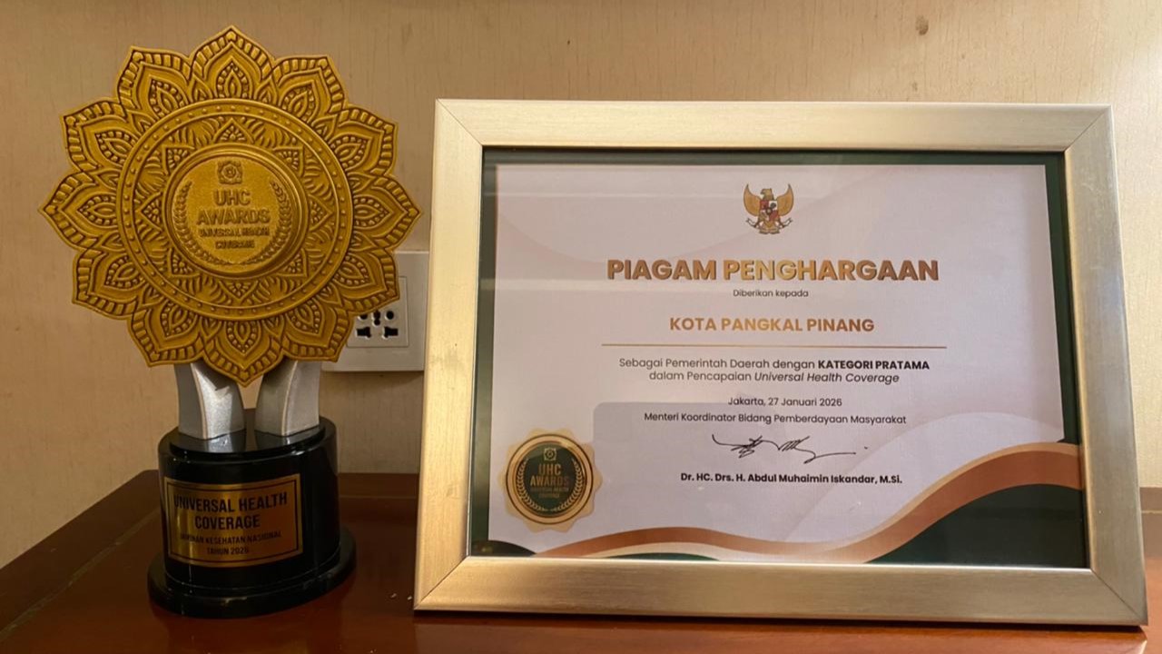 UHC Award 2026 diberikan karena tingkat kepesertaan BPJS Kesehatan warga Pangkalpinang telah mencapai 99,86 persen, atau melampaui ambang batas nasional sebesar 98 persen dari total jumlah penduduk. Capaian tersebut menempatkan Pangkalpinang sebagai daerah dengan perlindungan jaminan kesehatan hampir menyeluruh.