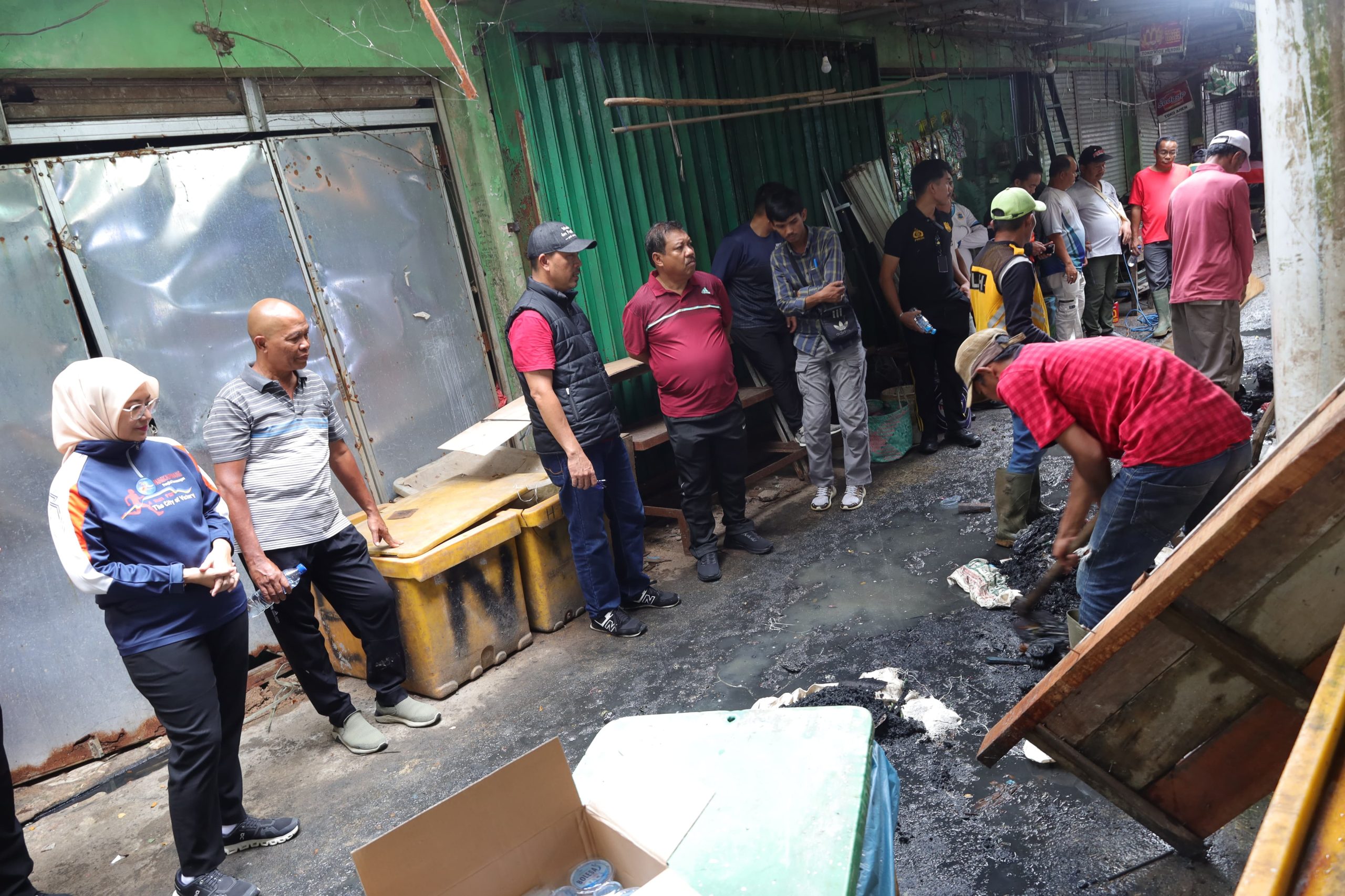 “LH tidak punya semprotan air, Damkar punya. Pol PP kita bantu Damkar agar penyemprotan bisa dilakukan. Hari ini kita fokus pada pembersihan selokan agar aliran lancar, baru kemudian kebersihan di dalam pasar,” ujarnya.