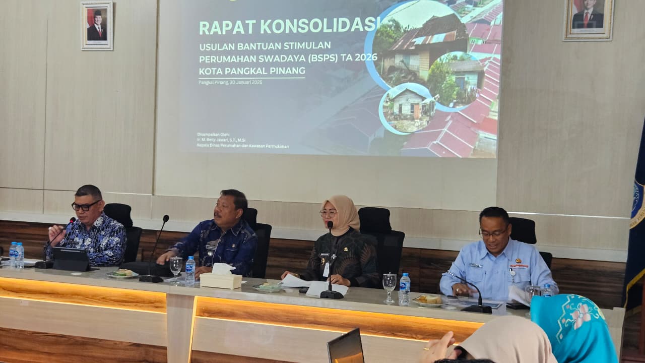 PANGKALPINANG, DAN – Pemerintah Kota Pangkalpinang terus menggenjot realisasi Program Bantuan Stimulan Perumahan Swadaya (BSPS) Tahun Anggaran 2026. Hal tersebut mengemuka dalam Rapat Konsolidasi Usulan BSPS TA 2026 yang digelar di Ruang Pertemuan Bapperida Kota Pangkalpinang, Jumat (30/1/2026).