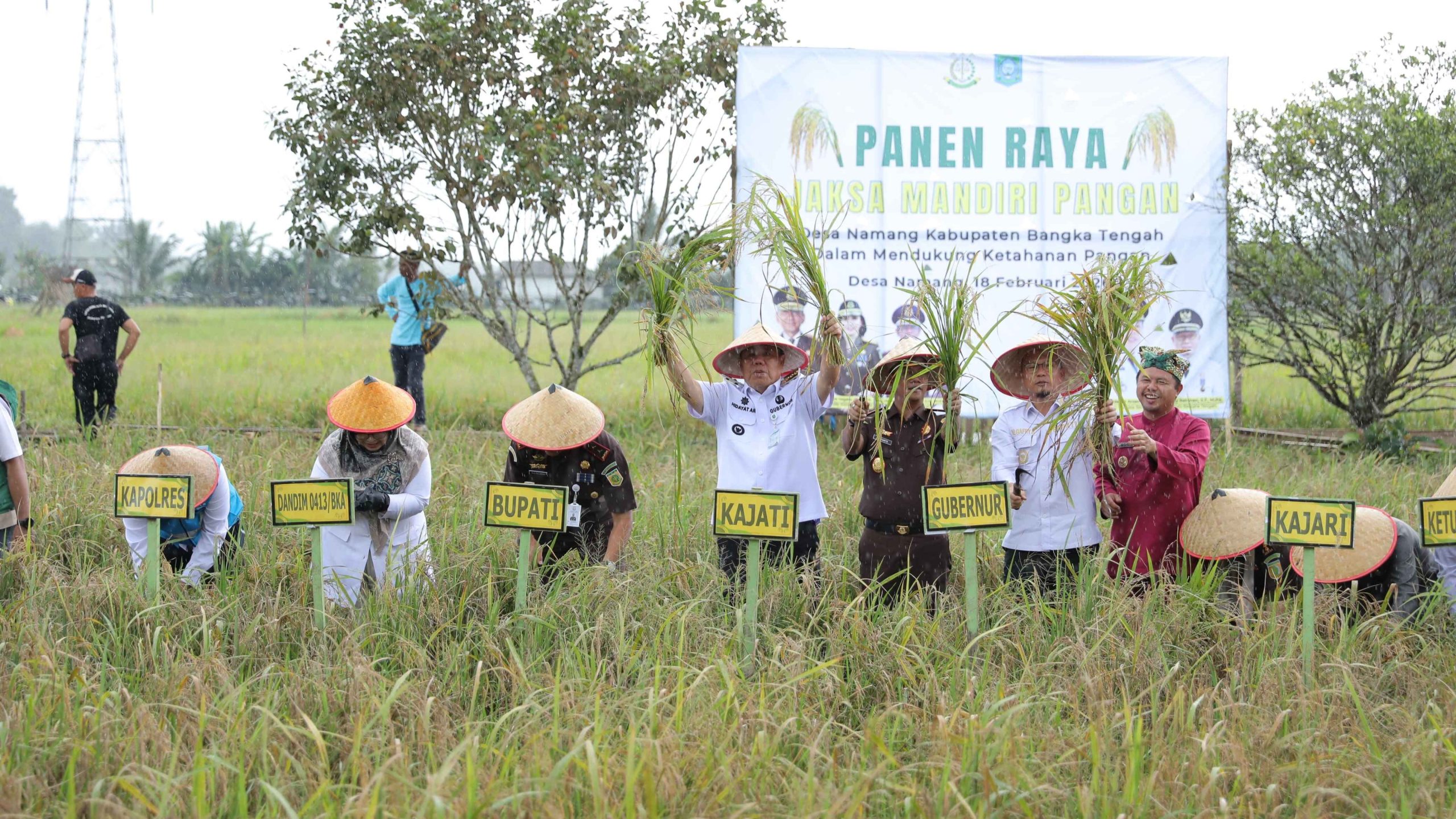 BANGKA TENGAH, DAN – Gubernur Kepulauan Bangka Belitung (Babel), Hidayat Arsani kembali menegaskan komitmen memperkuat ketahanan pangan daerah saat menghadiri panen raya perdana program Jaksa Mandiri Pangan di Desa Namang, Rabu (18/2/2026). Panen di lahan sekitar 100 hektare tersebut menghasilkan capaian yang dinilai memuaskan dan menjadi bukti keberhasilan pengelolaan pertanian terencana.