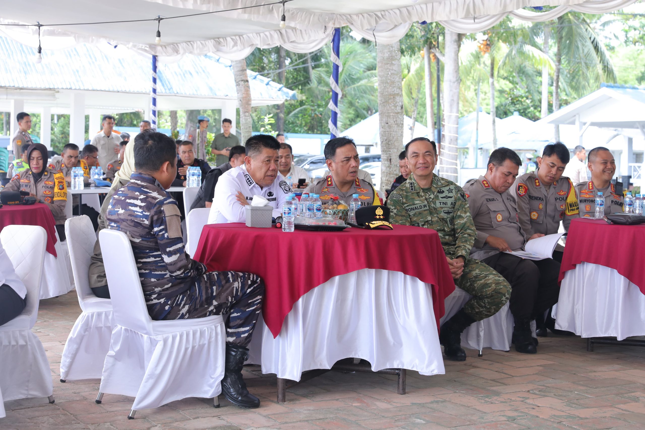 PANGKALPINANG, DAN – Gubernur Kepulauan Bangka Belitung (Babel), Hidayat Arsani bersama Wali Kota dan Wakil Wali Kota Pangkalpinang serta unsur Forkopimda Babel mengikuti Analisis dan Evaluasi (Anev) Kamtibmas secara serentak guna memastikan keamanan dan pelayanan masyarakat selama perayaan Idulfitri 1447 Hijriah tetap aman dan kondusif. Kegiatan yang digelar melalui zoom meeting tersebut berlangsung di Pantai Wisata Pasir Padi, Pangkalpinang, Selasa (24/3/2026), dengan fokus utama pada monitoring situasi keamanan serta pelayanan di objek wisata yang menjadi pusat aktivitas masyarakat selama libur Lebaran.
