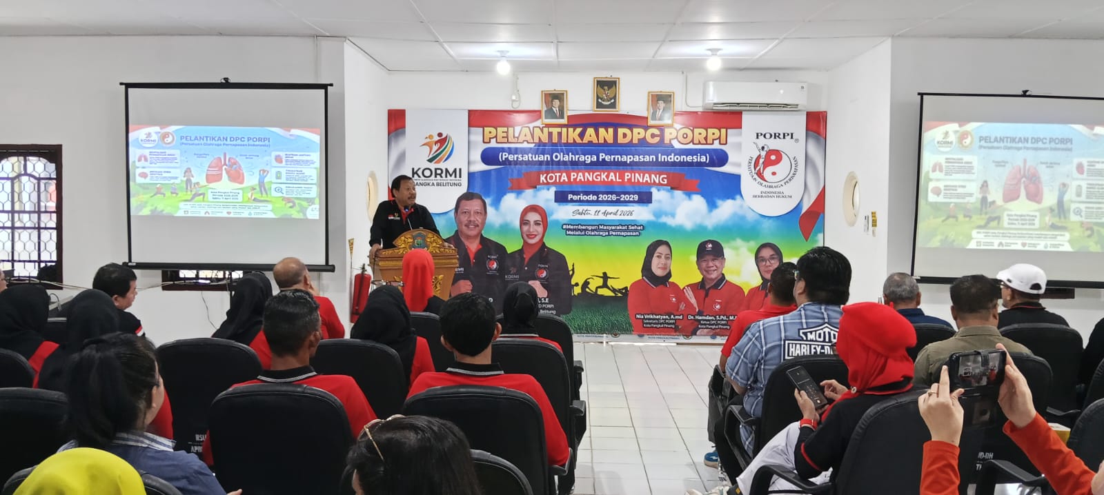PANGKALPINANG, DAN – Wali Kota Pangkalpinang sekaligus Ketua Umum DPD Persatuan Olahraga Pernapasan Indonesia (PORPI) Provinsi Kepulauan Bangka Belitung, Prof Saparudin, melantik pengurus DPC PORPI Kota Pangkalpinang periode 2026–2029, Sabtu (11/5/2026). Pelantikan ini menjadi langkah awal penguatan olahraga pernapasan sebagai bagian dari gaya hidup sehat masyarakat sekaligus upaya meningkatkan kesadaran terhadap pentingnya kualitas lingkungan.